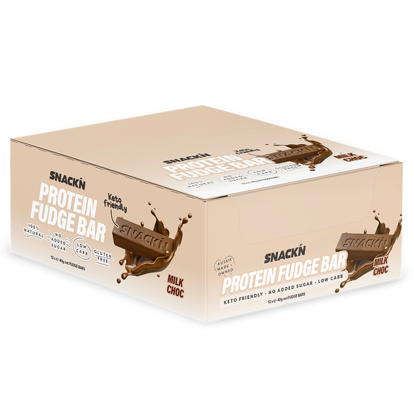 Snackn Delicious Chocolate Fudge is 100% Natural, made from real curvature chocolate, and packed with premium sources of muscle building protein (Whey Protein Isolate – WPI and Organic Milk Protein Concentrate), making it the perfect healthy high protein snack to satisfying your chocolate cravings… All without the sugar!