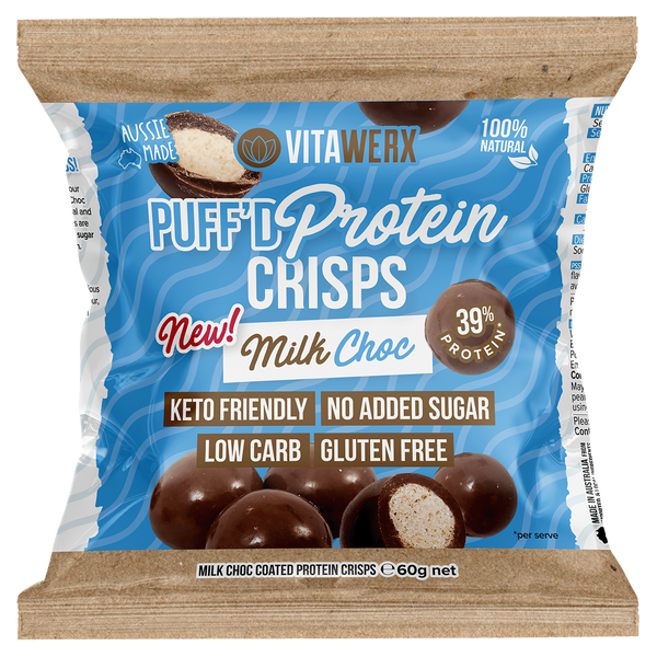 Indulge your sweet tooth without the guilt with Vitawerx Puff’d Protein Crisps, the world’s first real couverture chocolate protein treat. Perfectly crafted with 39% protein from premium Whey Protein Isolate (WPI), these crunchy, decadent crisps are keto-friendly and gluten-free, making them an ideal snack for those who want to boost their protein intake without compromising on taste.